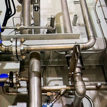 Sterile piping setups are essential for processes like chemical extraction for material processing.