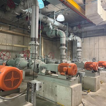 Piping systems transport steam, water, and other fluids for plant operations.